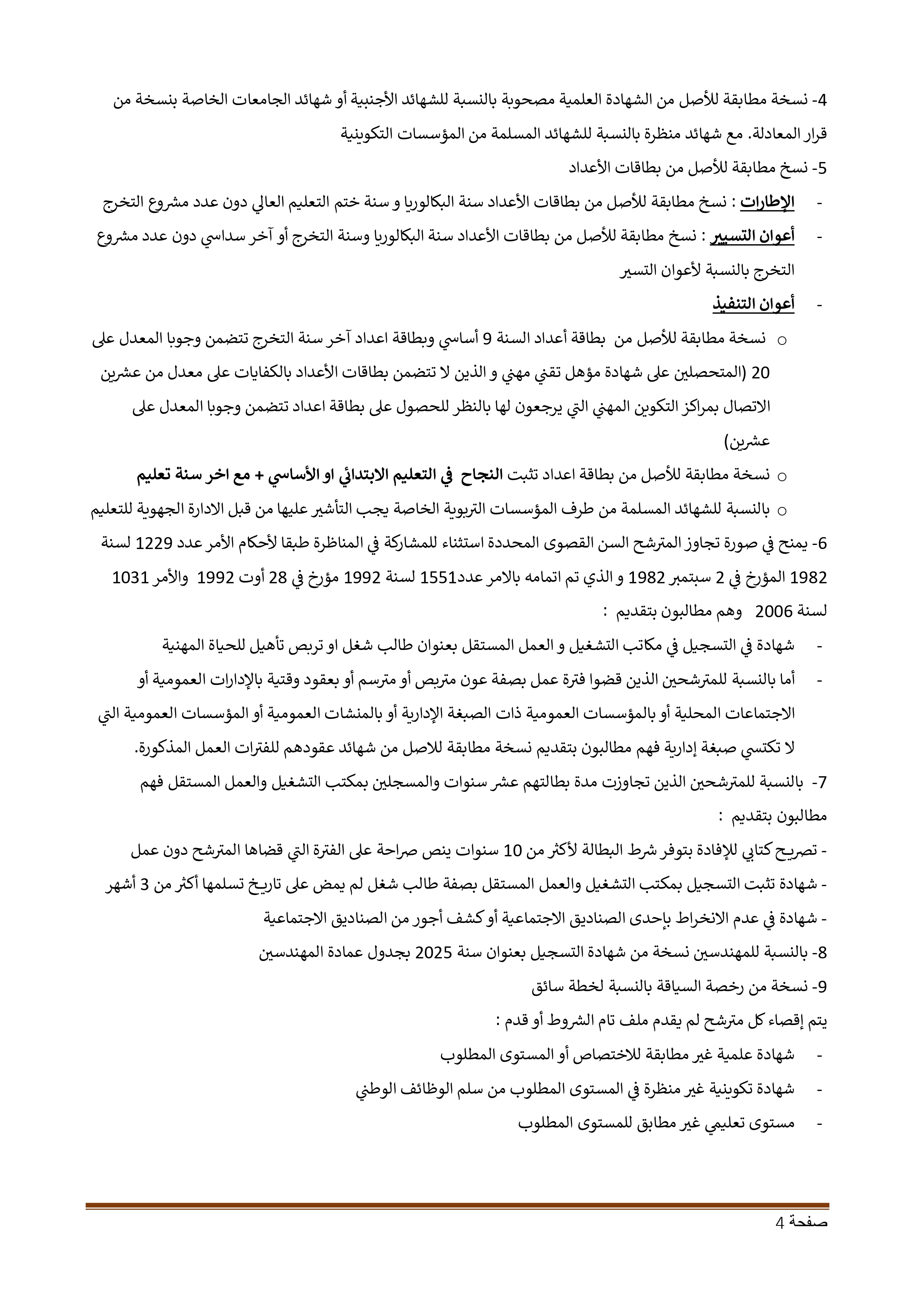 - أقصى سن 35 سنة لبقية المترشحين (مع استثناءات تصل إلى 40 سنة).